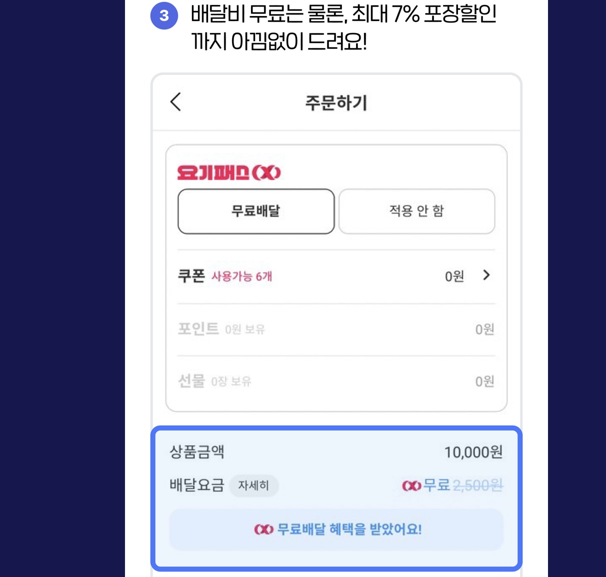 배달비 없이 주문할 수 있다.